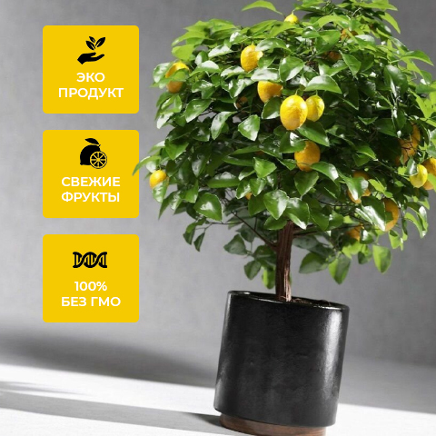 Наш гибридный мини-лимонник занимает всего несколько квадратных дюймов, но при этом радует вас сочными и ароматными лимонами. Он легко разместится на окне, столе или подарочной полке, добавляя изысканности и свежести в любое помещение.